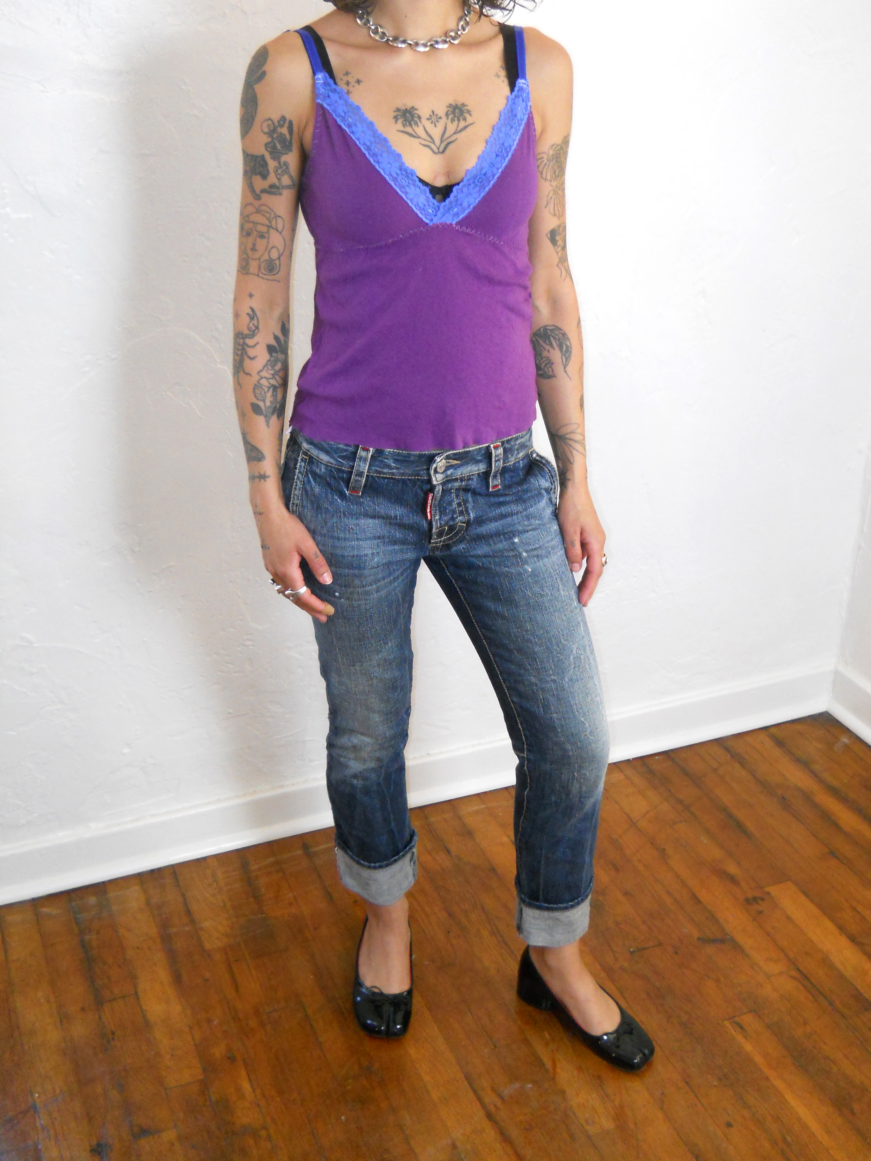 Labeled 38, best for XS/S (waist: 29”, rise: 7.5”, hip: 36”, inseam: 27”)