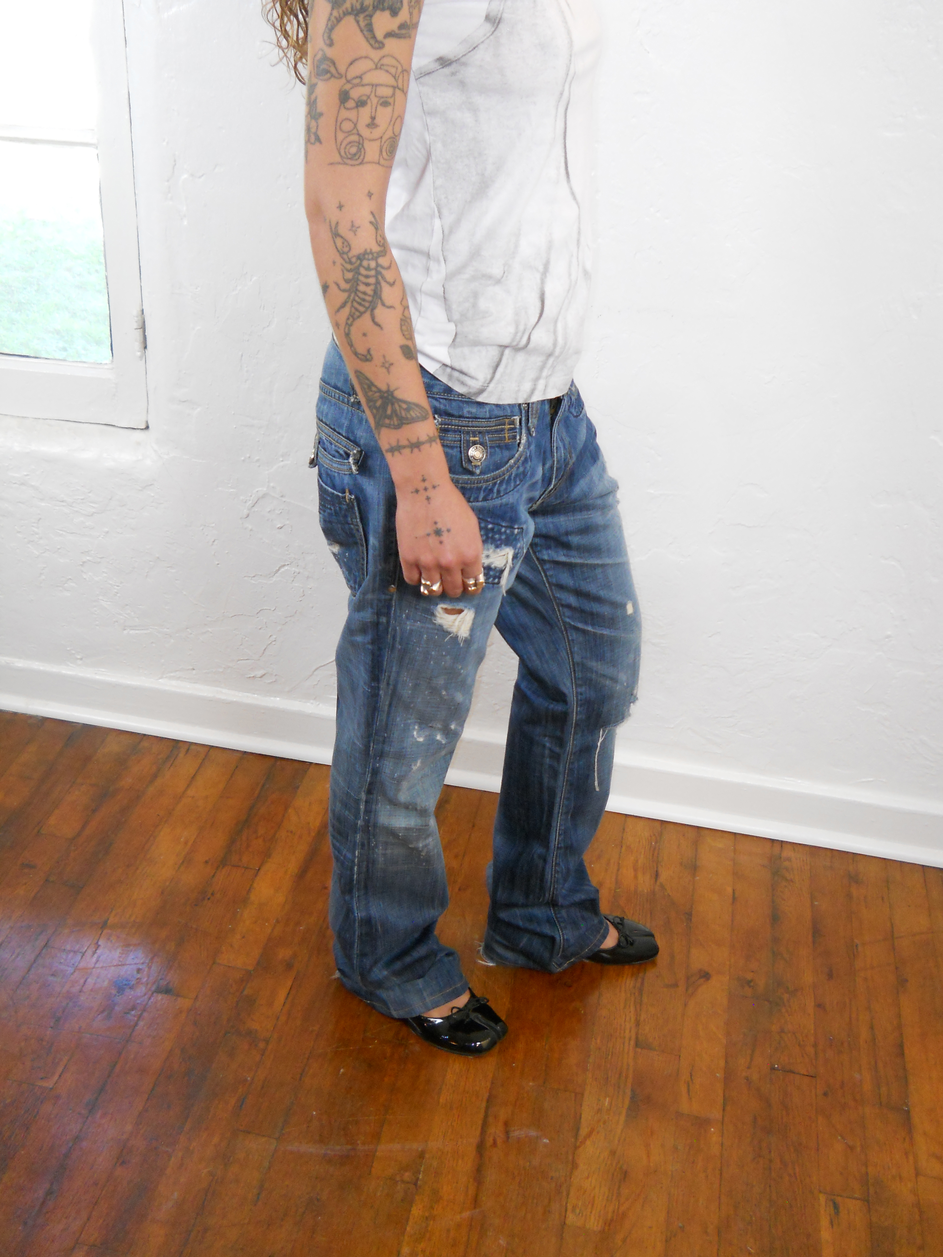 Labeled 29, Small - Medium (waist: 31”, rise: 9”, hip: 42”, inseam: 33”)