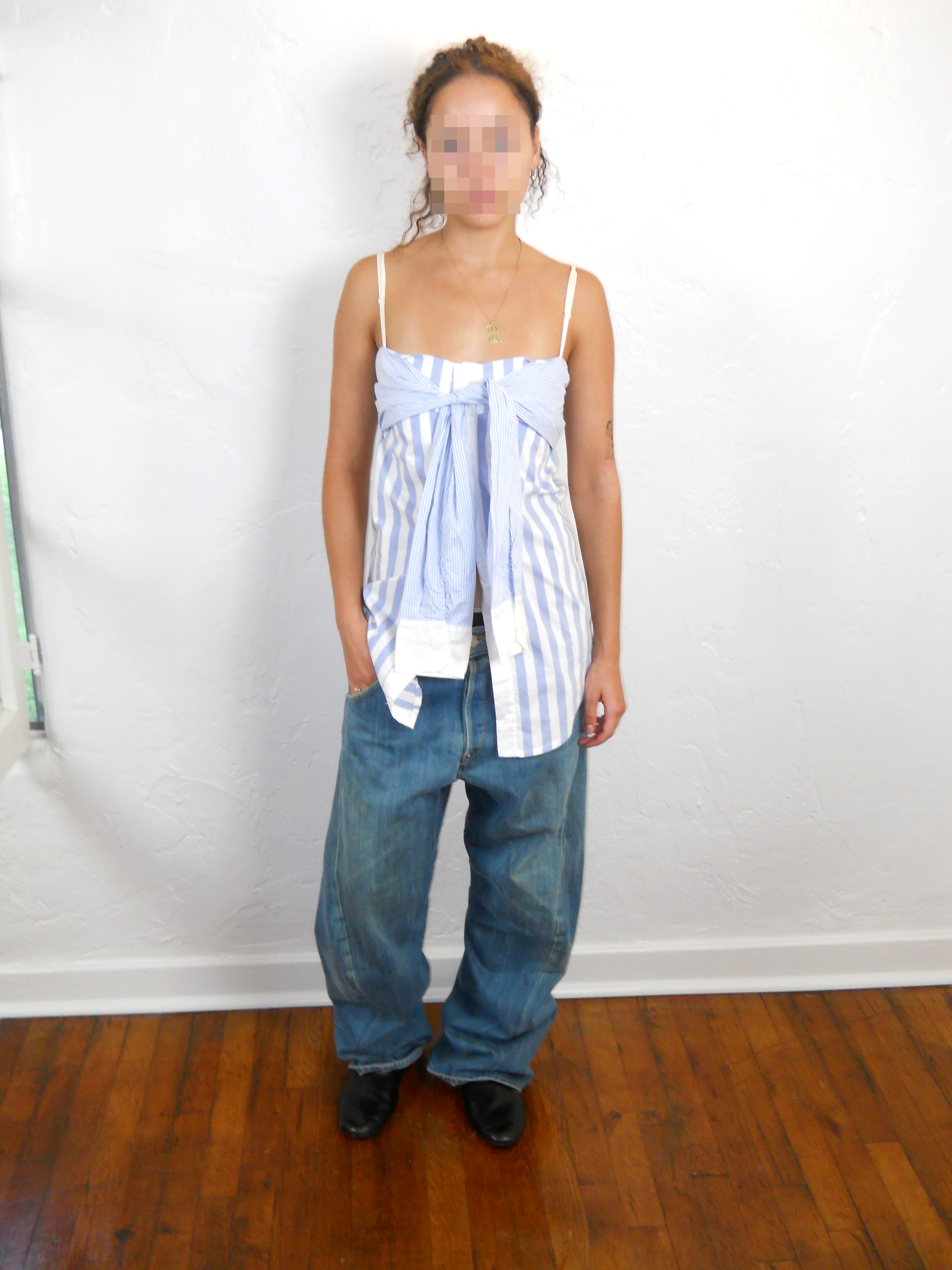 XS (pit to pit: 14.5”, neckline to bottom hem: 22”)