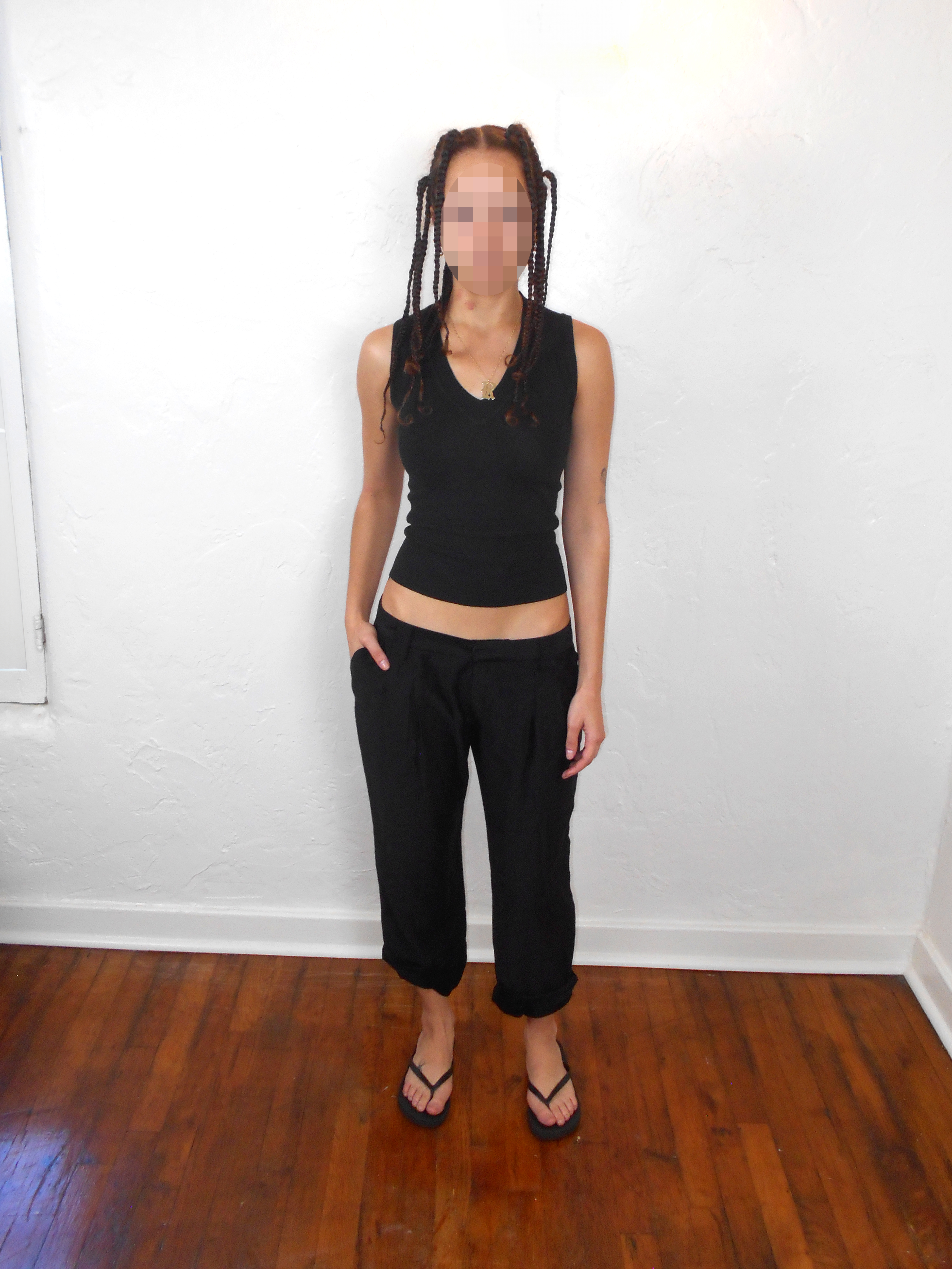 Labeled 40, best for S (waist: 30”, rise: 8”, hip: 41”, inseam: 23”)