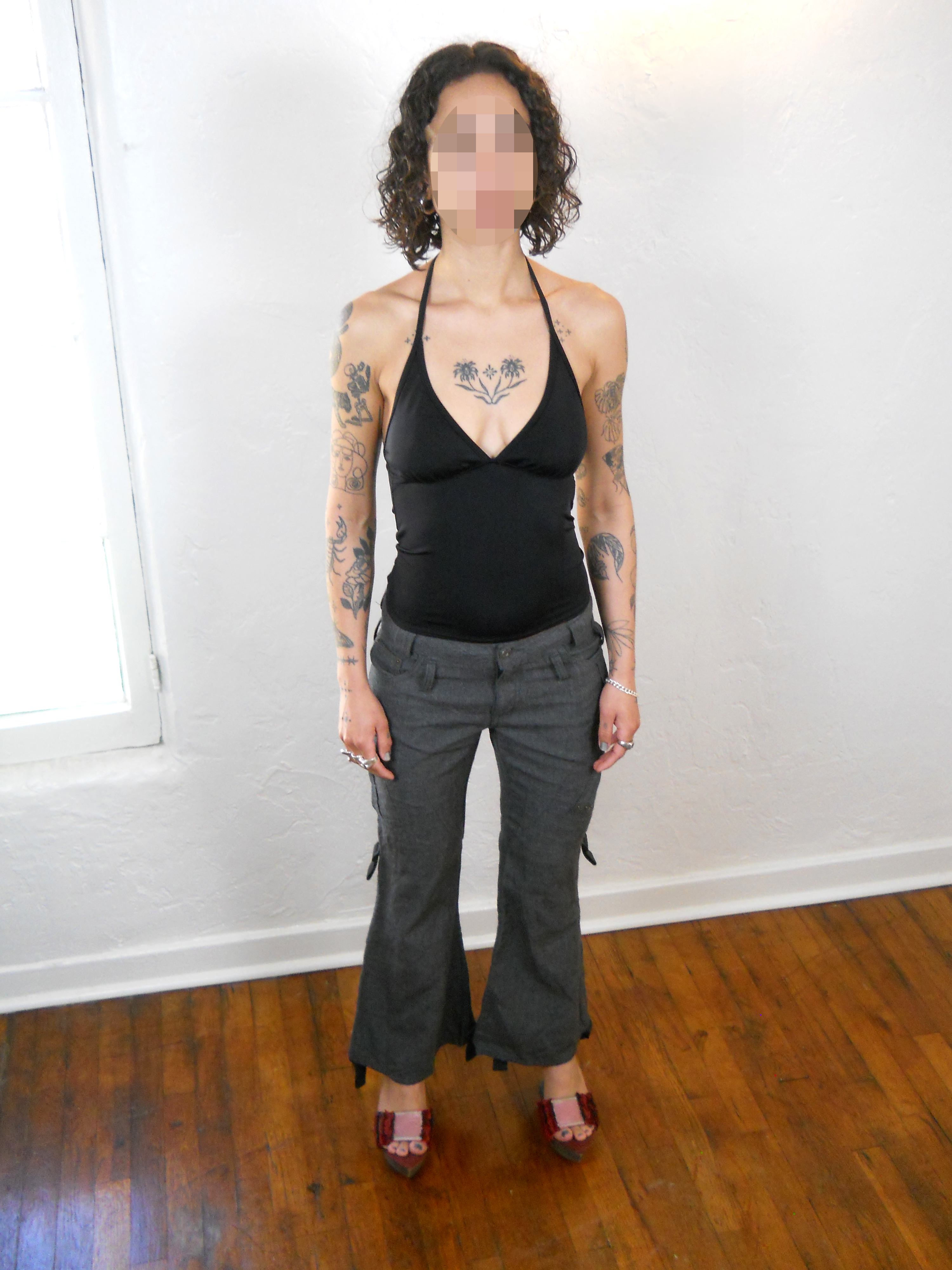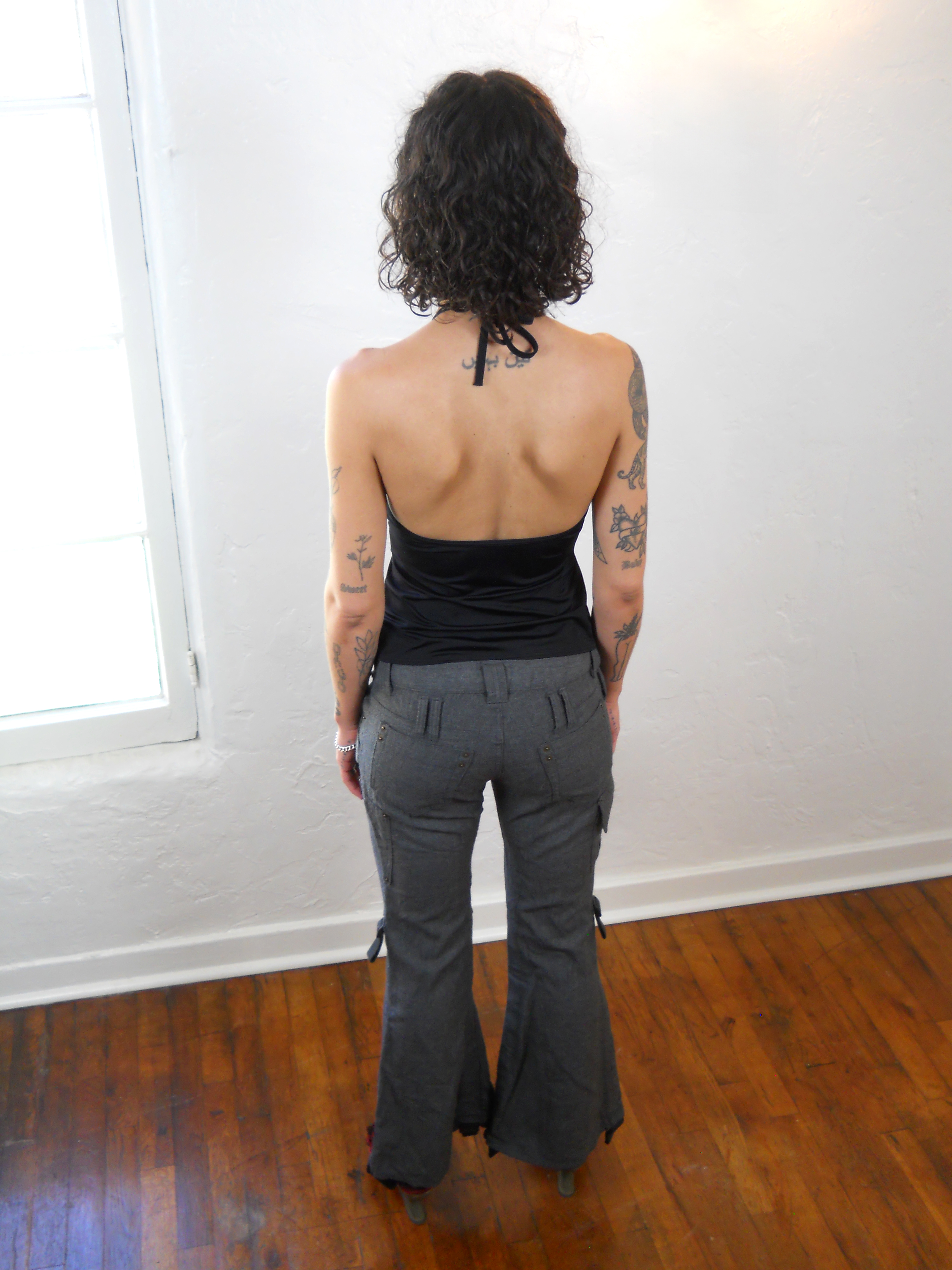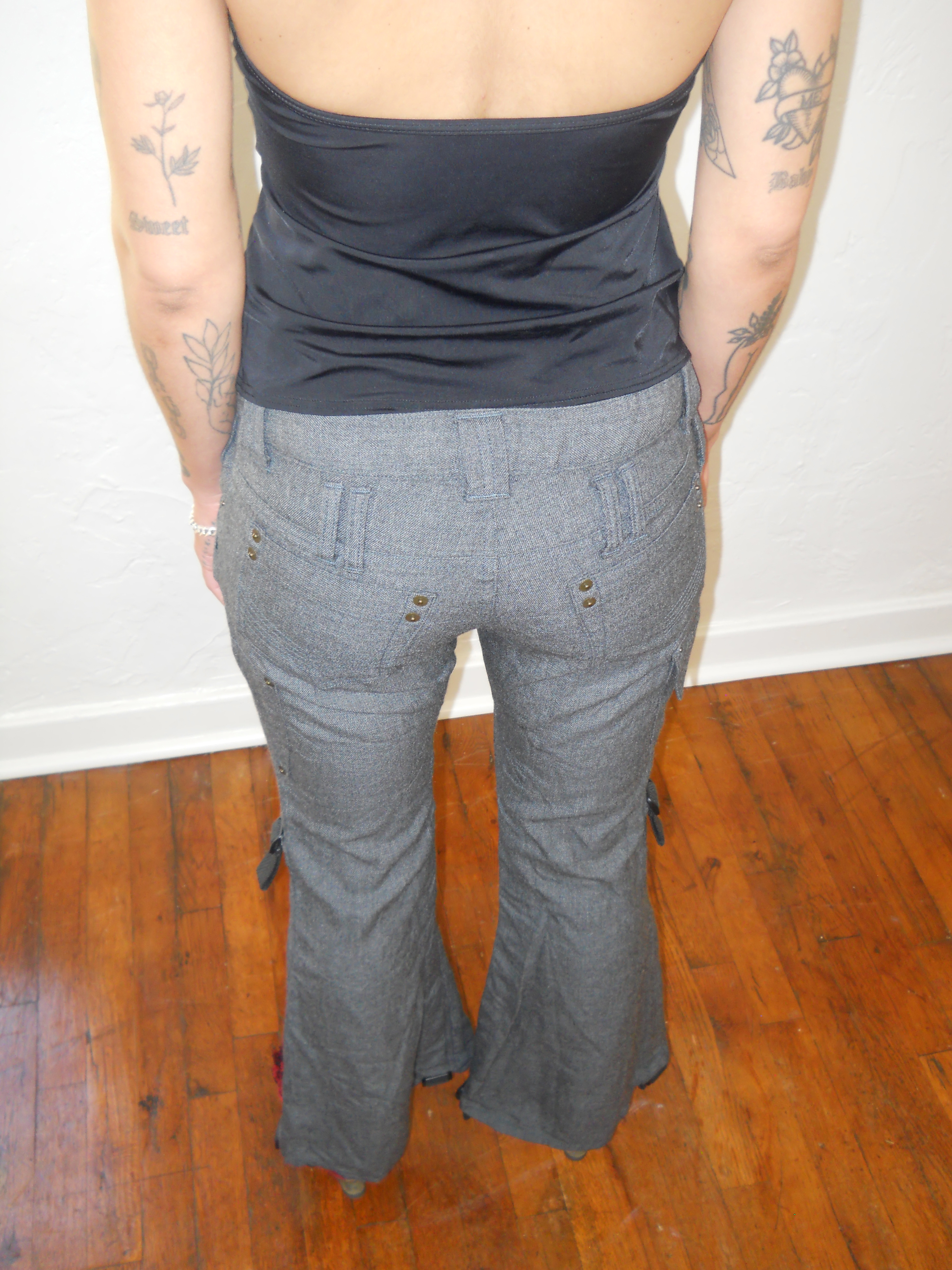 S, Labeled 40 (waist: 28”, rise: 8.5”, hip: 37”, inseam: 28”)