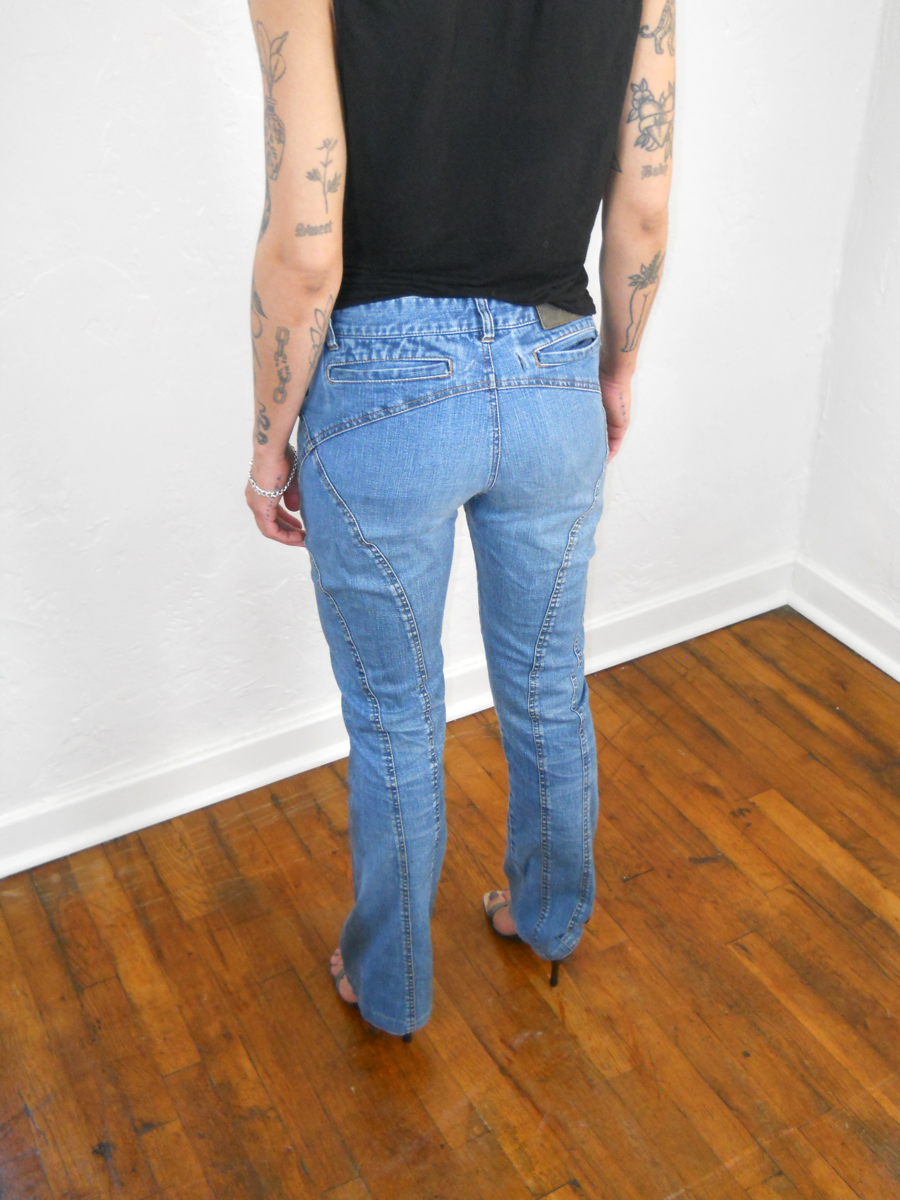 Labeled 6/38, best for S (stretchy material, waist: 28”, rise: 9.5”, hip: 36”, inseam: 31”)