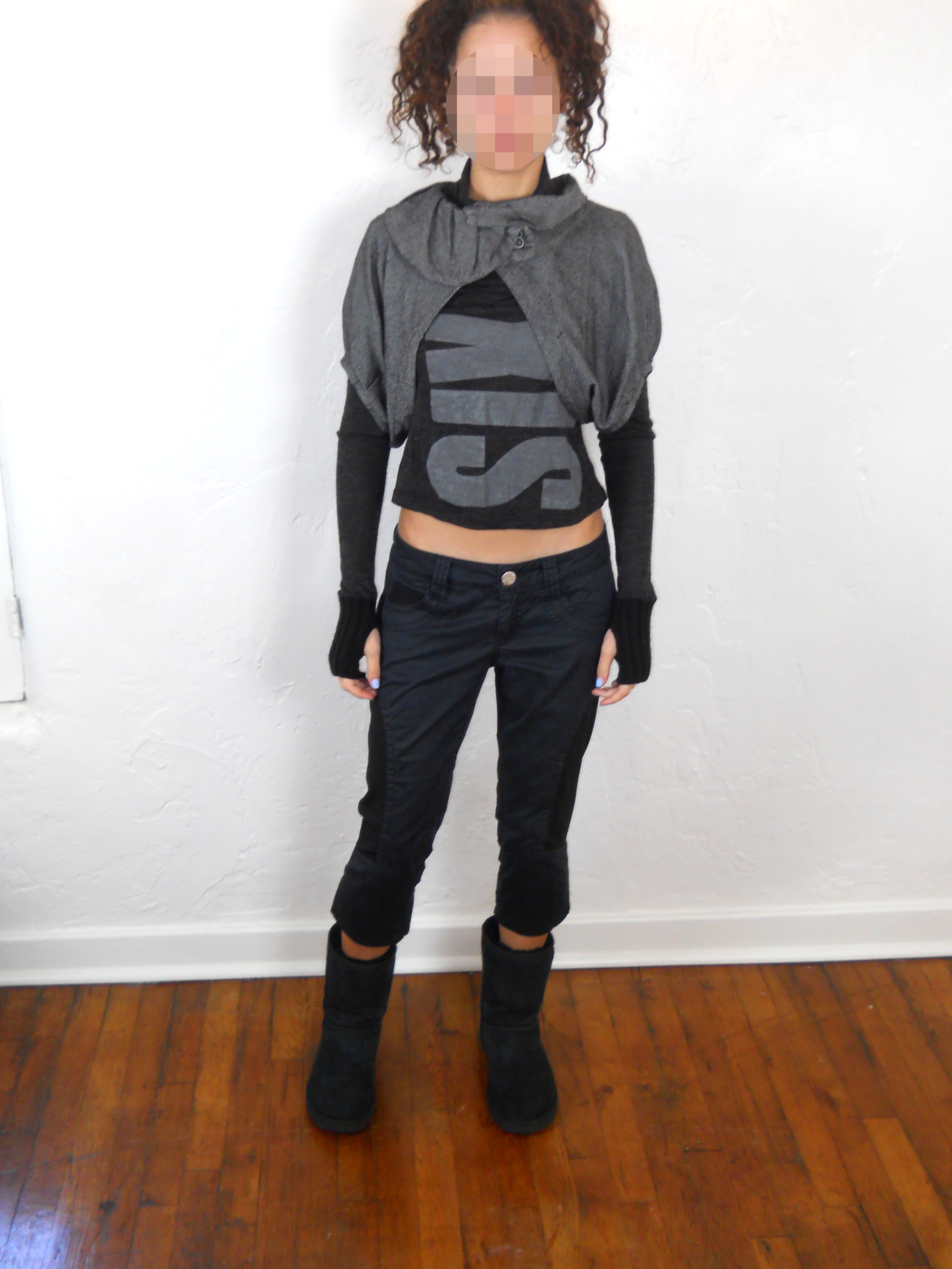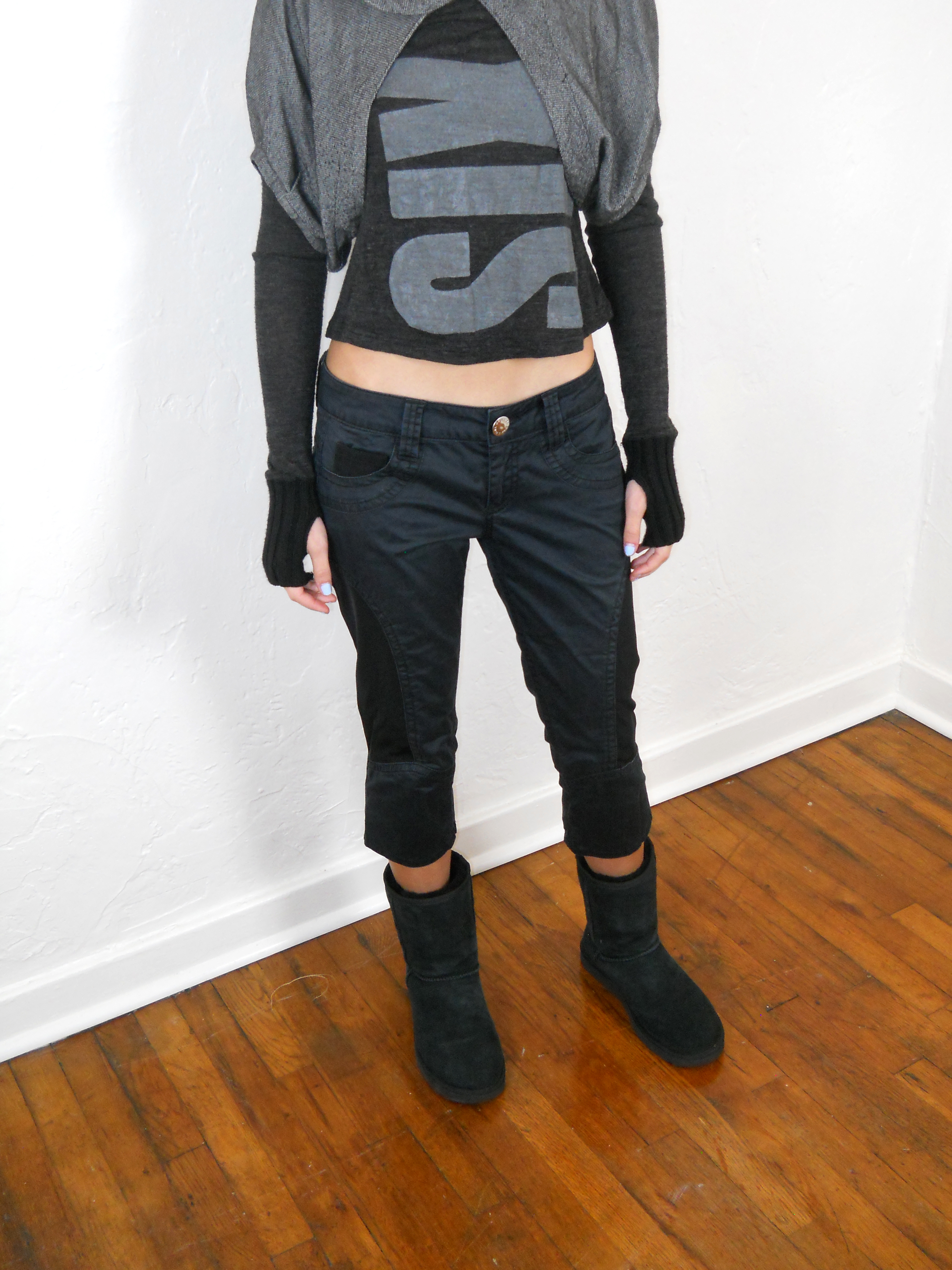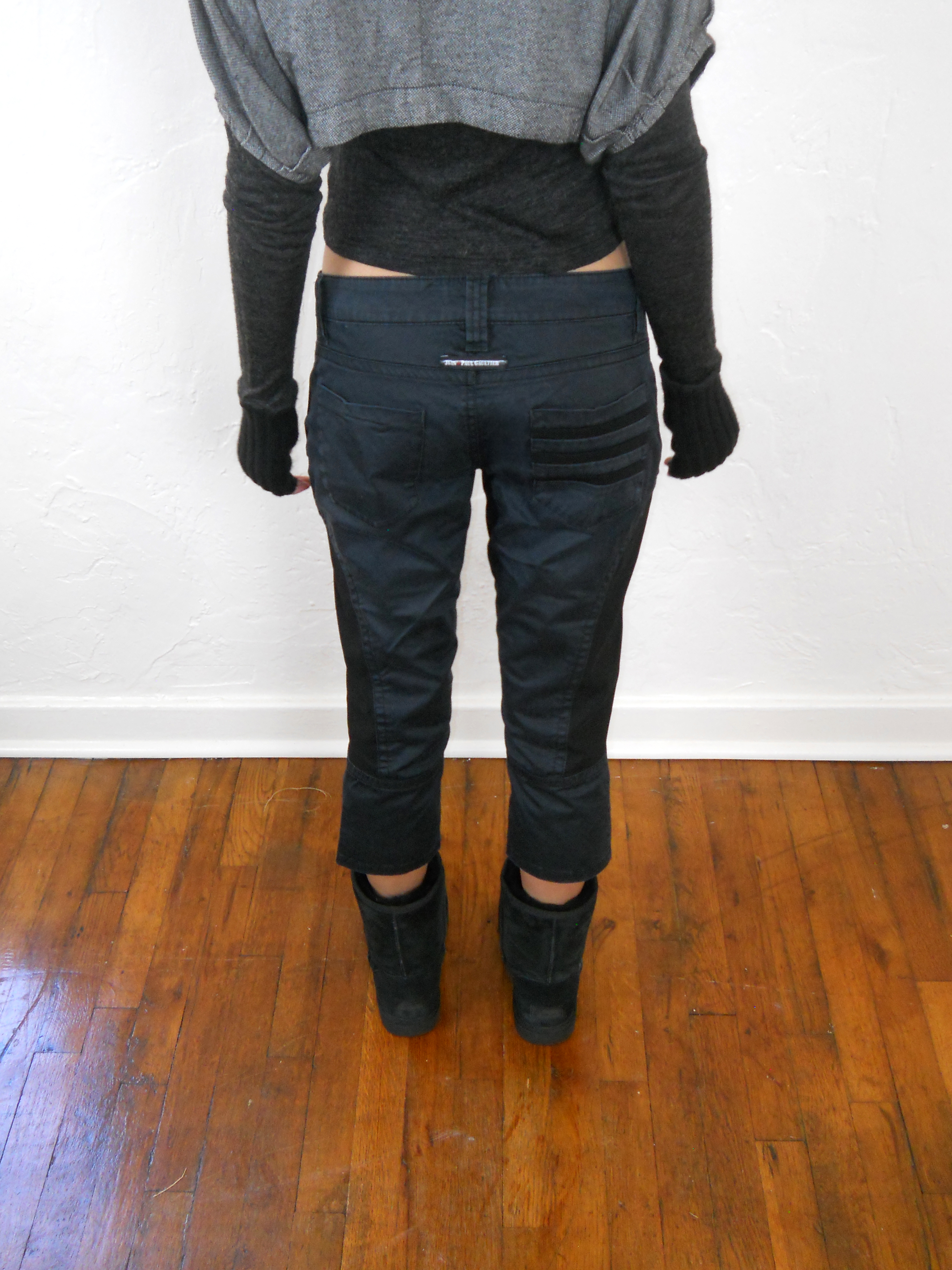 Labeled 28, US 4-6 (waist: 15”, rise: 8”, inseam: 19.5”)