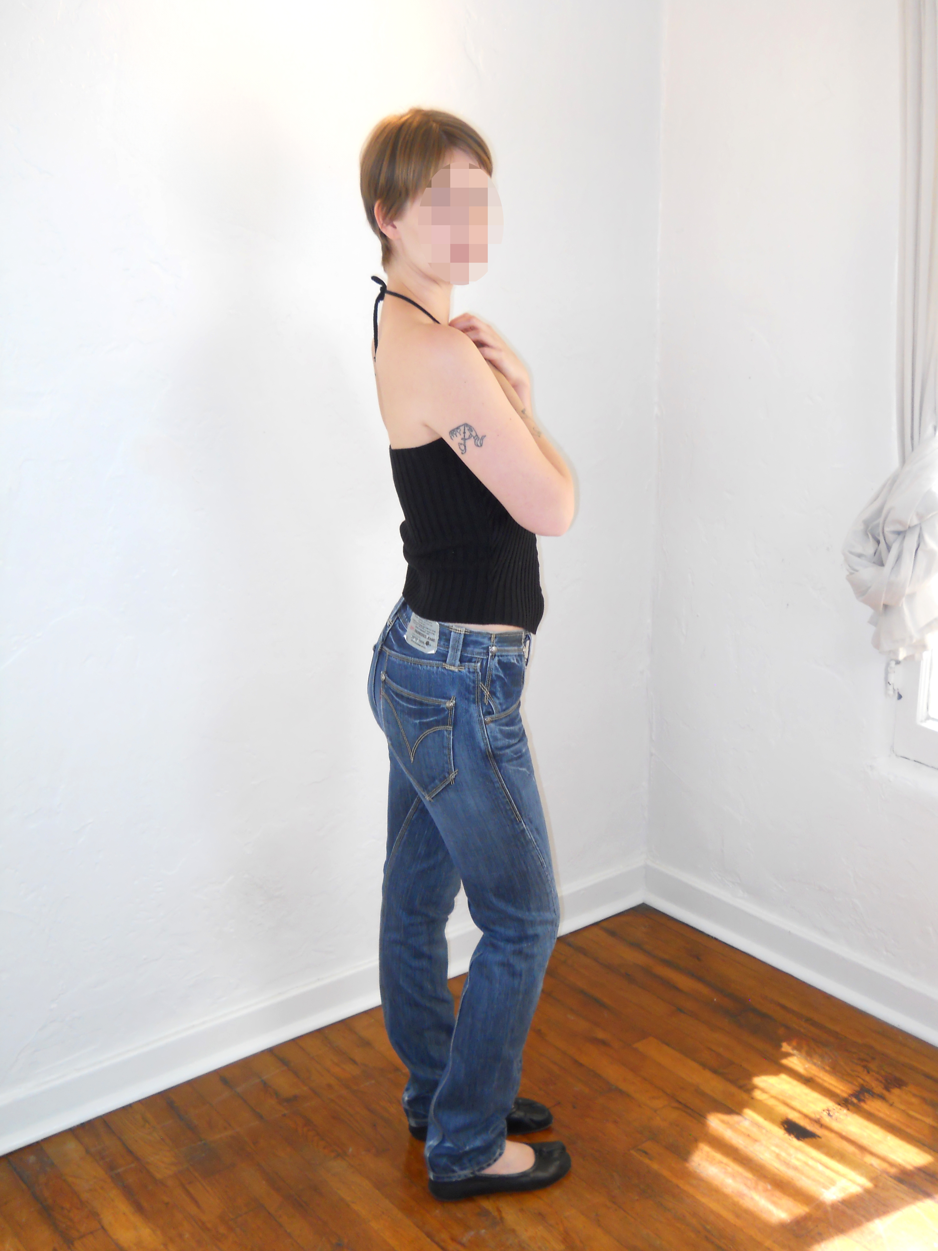 XS (waist: 29” rise: 9”, hip: 38”, inseam: 32.5”)