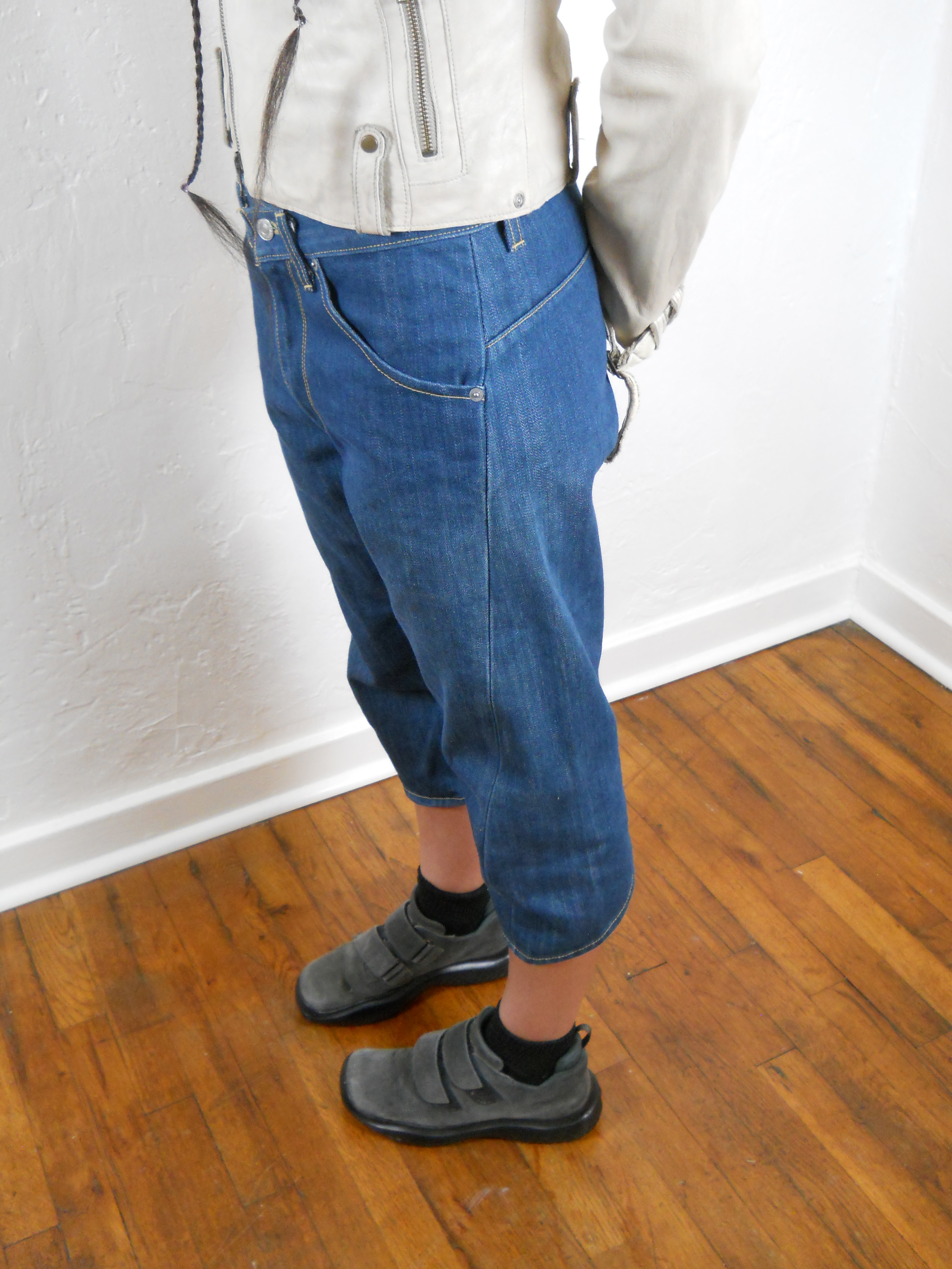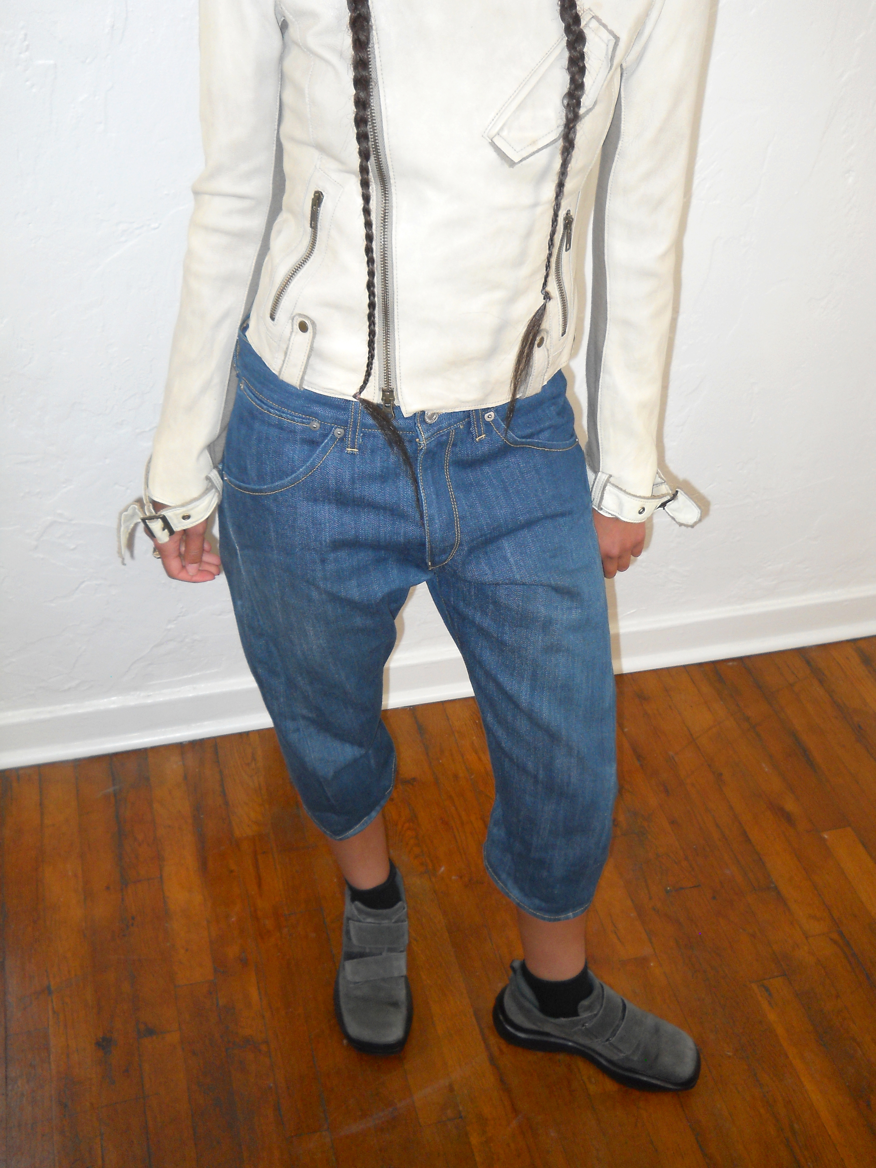 Labeled L, better for S for relaxed fit (waist: 31”, rise: 10.5”, hip: 44”, inseam: 19.5”)