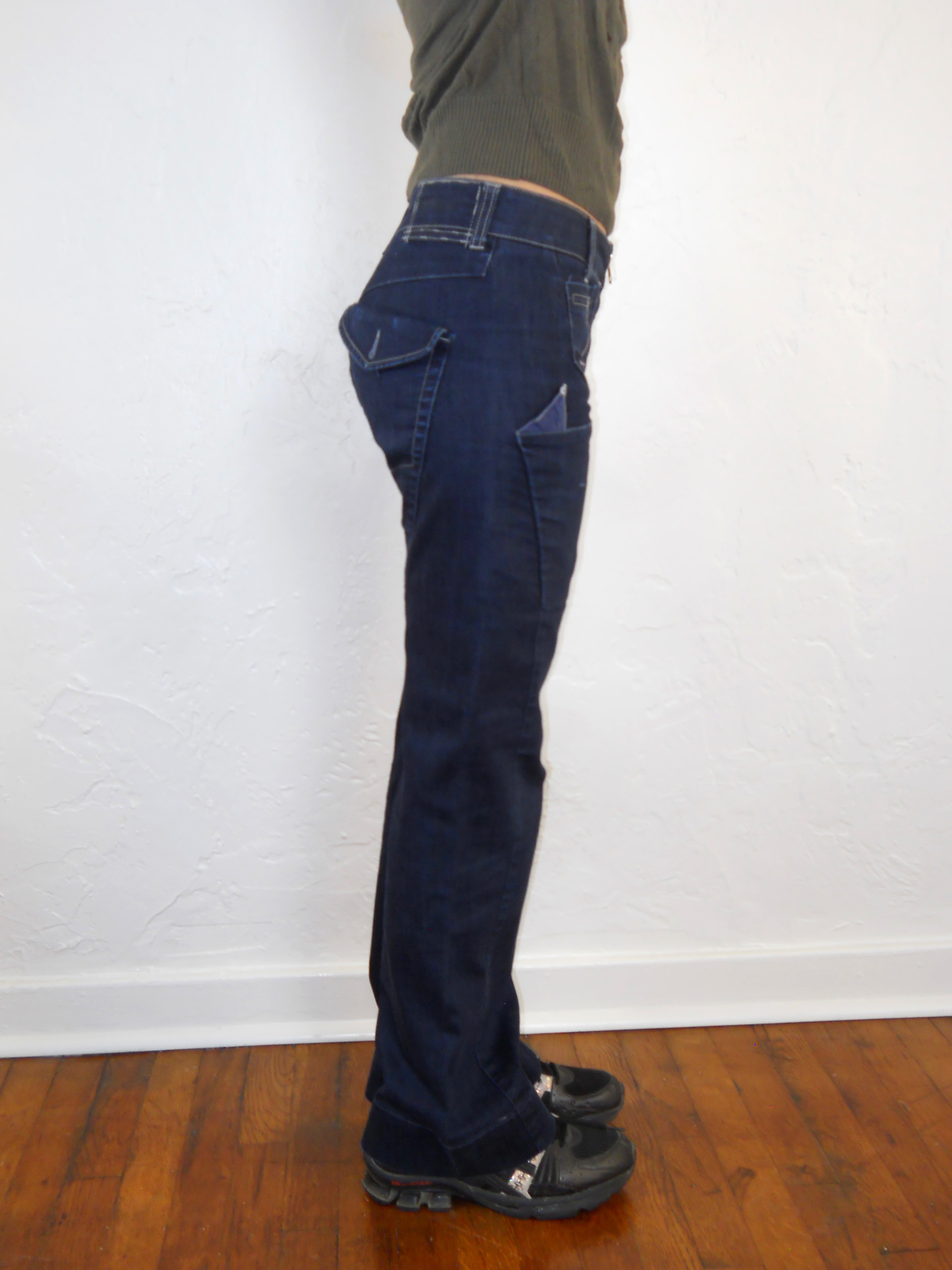 Labeled 26, Small (Waist: 28”, rise: 8”, hip: 36”, inseam: 30”)