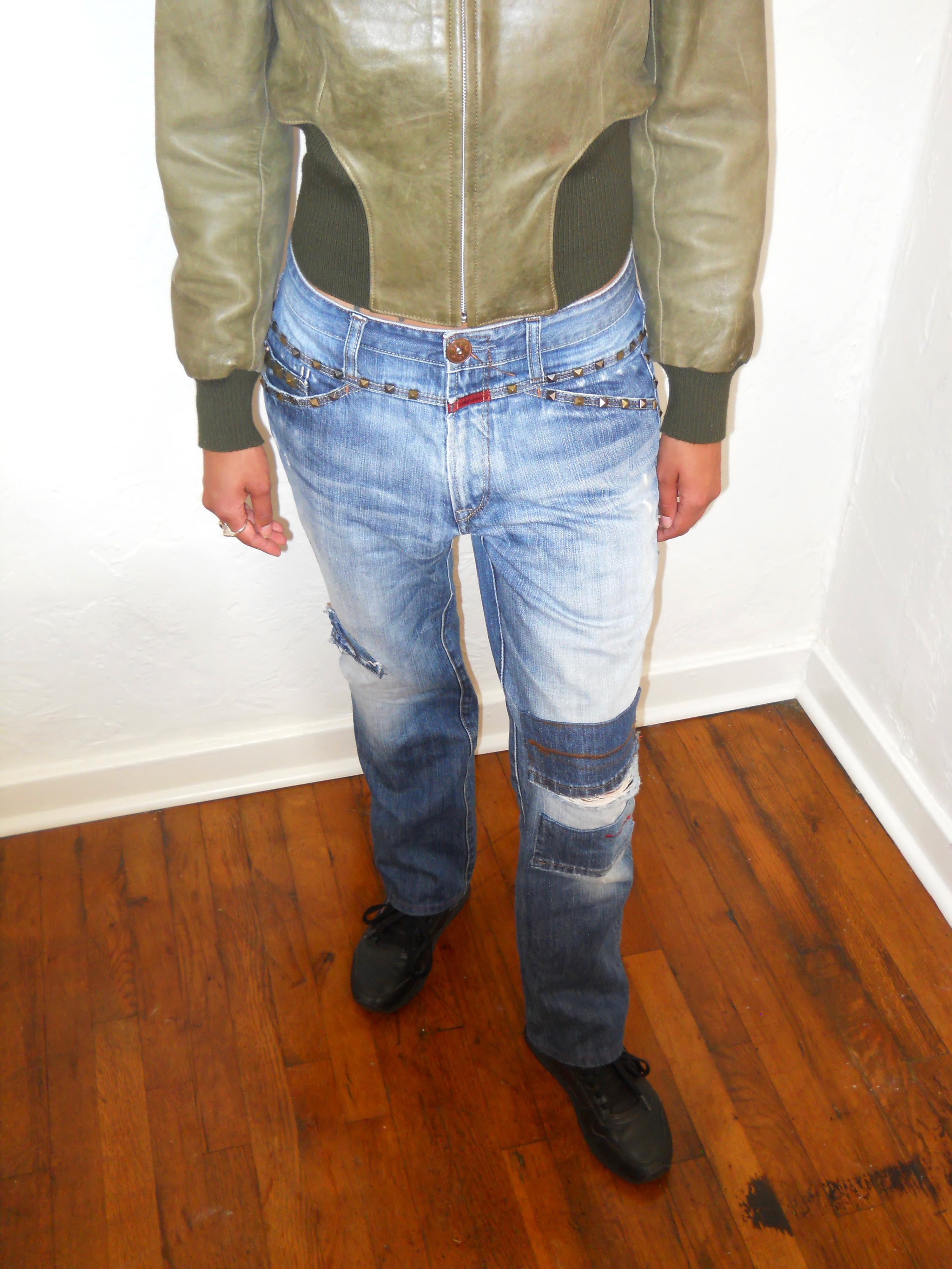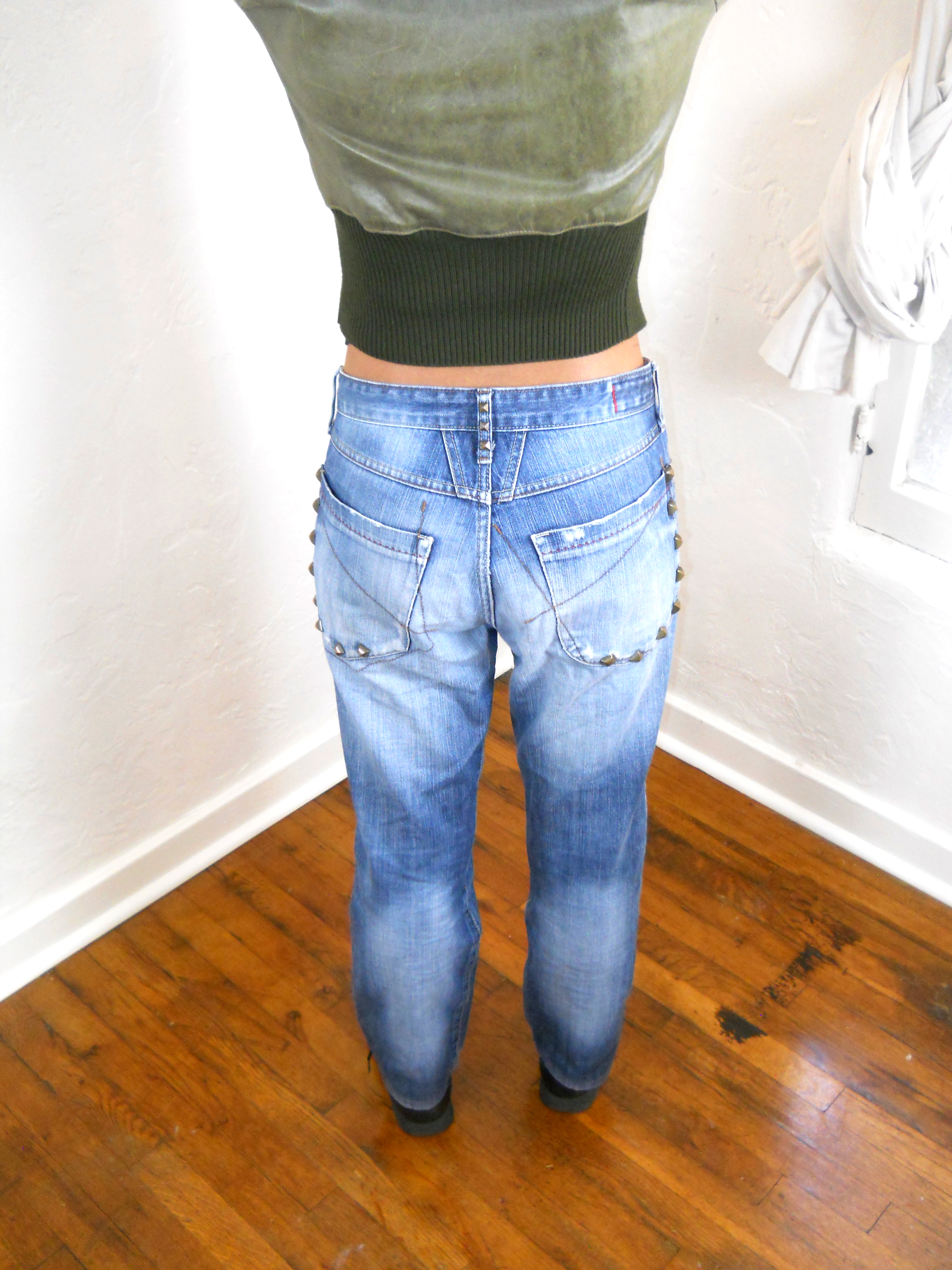 Labeled L (waist: 33”, rise: 10”, hip: 43”, inseam: 29.5”)