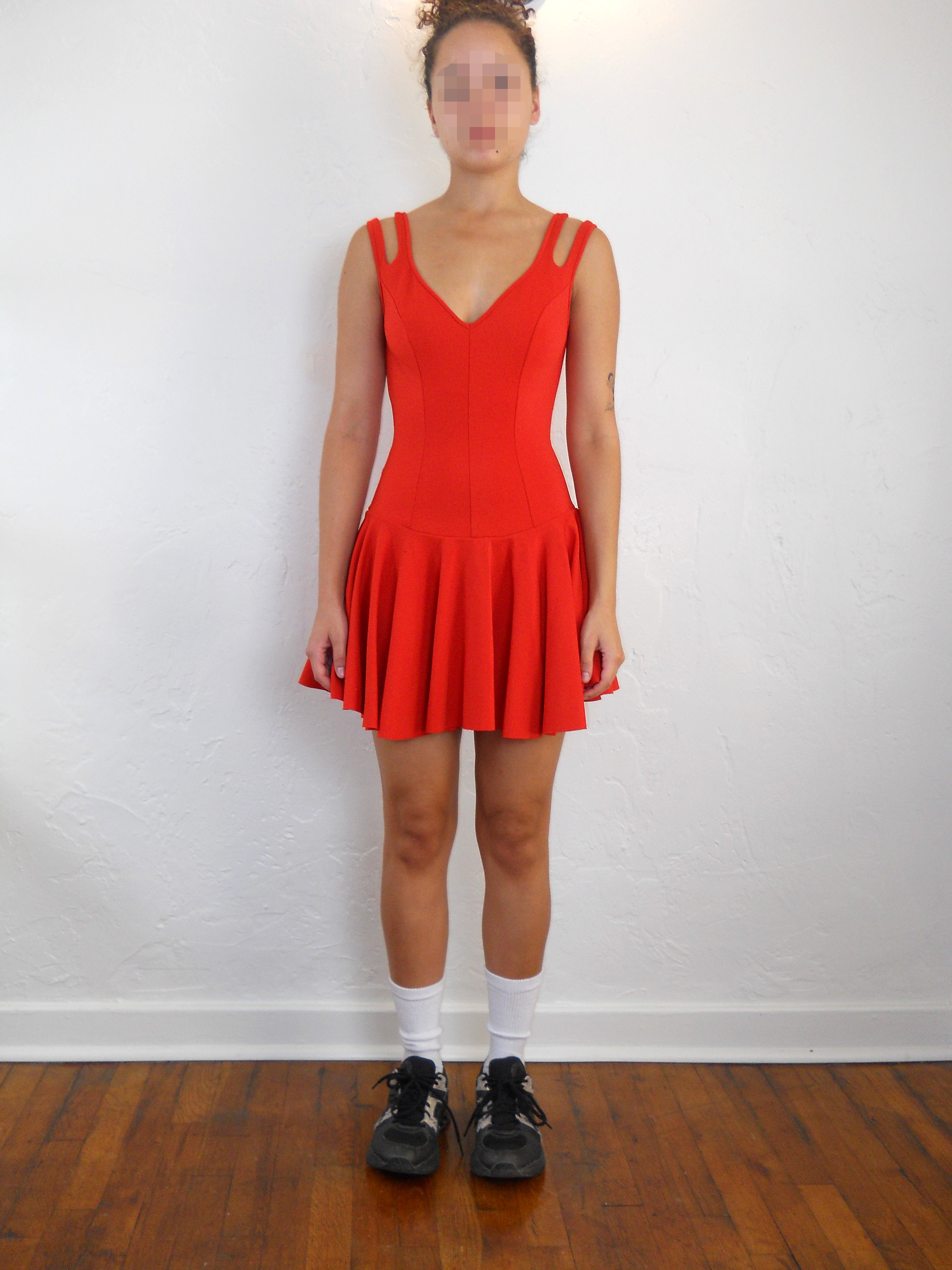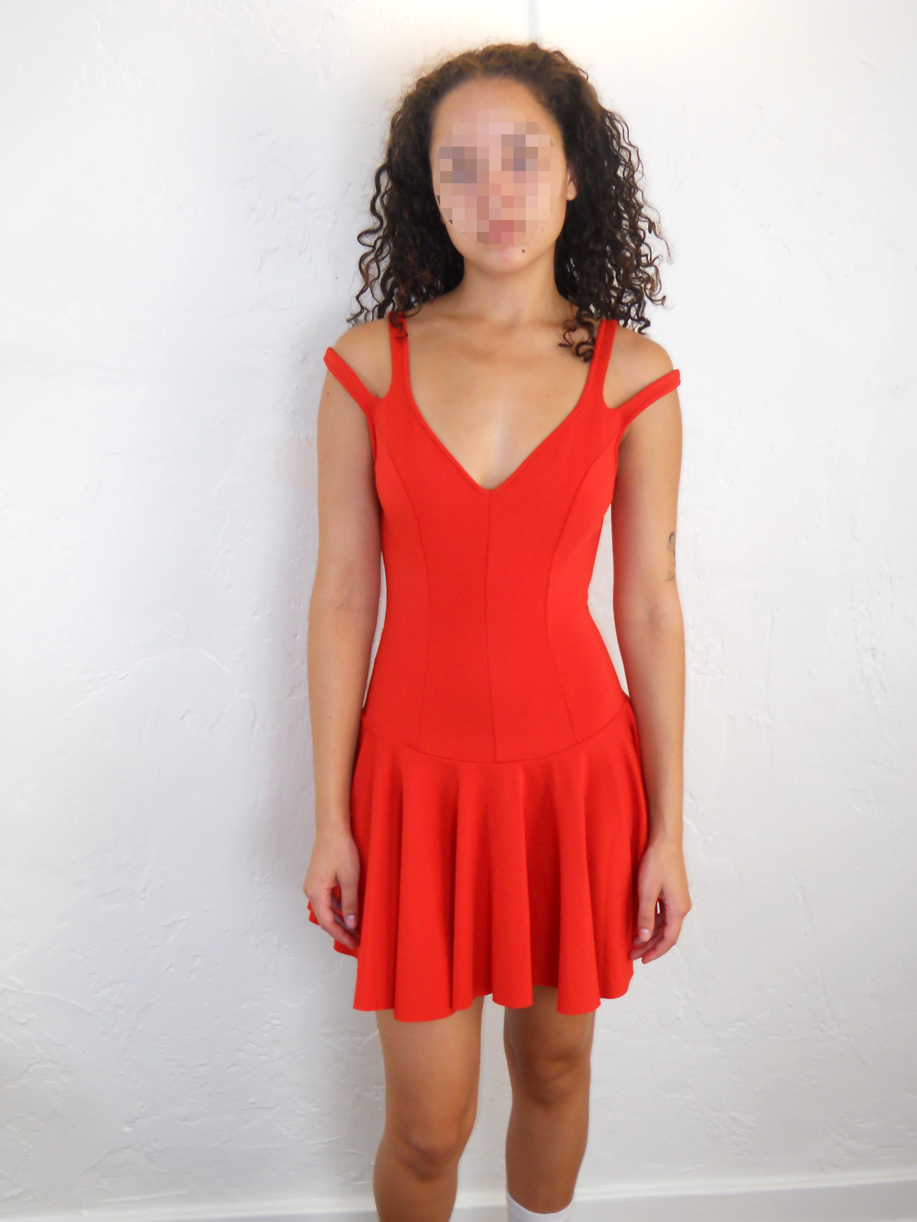 XS - S (pit to pit: 14”, model is 5’4)